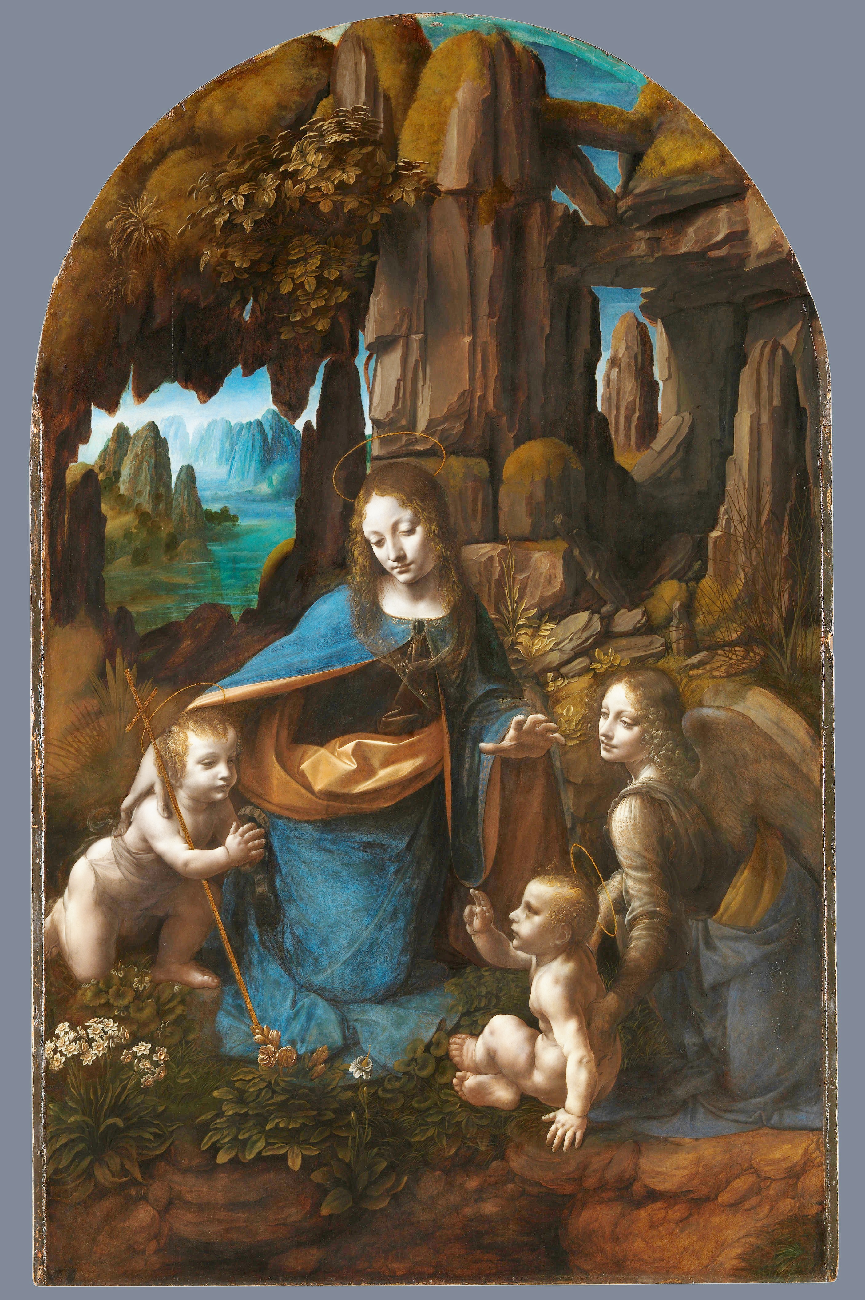 Most religious figures are known by their allegorical attributes. The two babies pose the perfect disguise for understating the personal religious affiliations of the artist. The infants are naked and therefore, anonymous. So, which one is the Christ-child and which is John the Baptist? Tradition says the baby placed highest in the picture plane should be Jesus. Until the alternative version of the composition, the babies were assumed to be: Jesus on the left (in the higher position as dictated by the hierarchy of his status) but Leonardo was believed to be a clandestine follower of John (the patron saint of Florence) so could he have painted John as the dominant figure? A baby is a baby. Which infant was John?