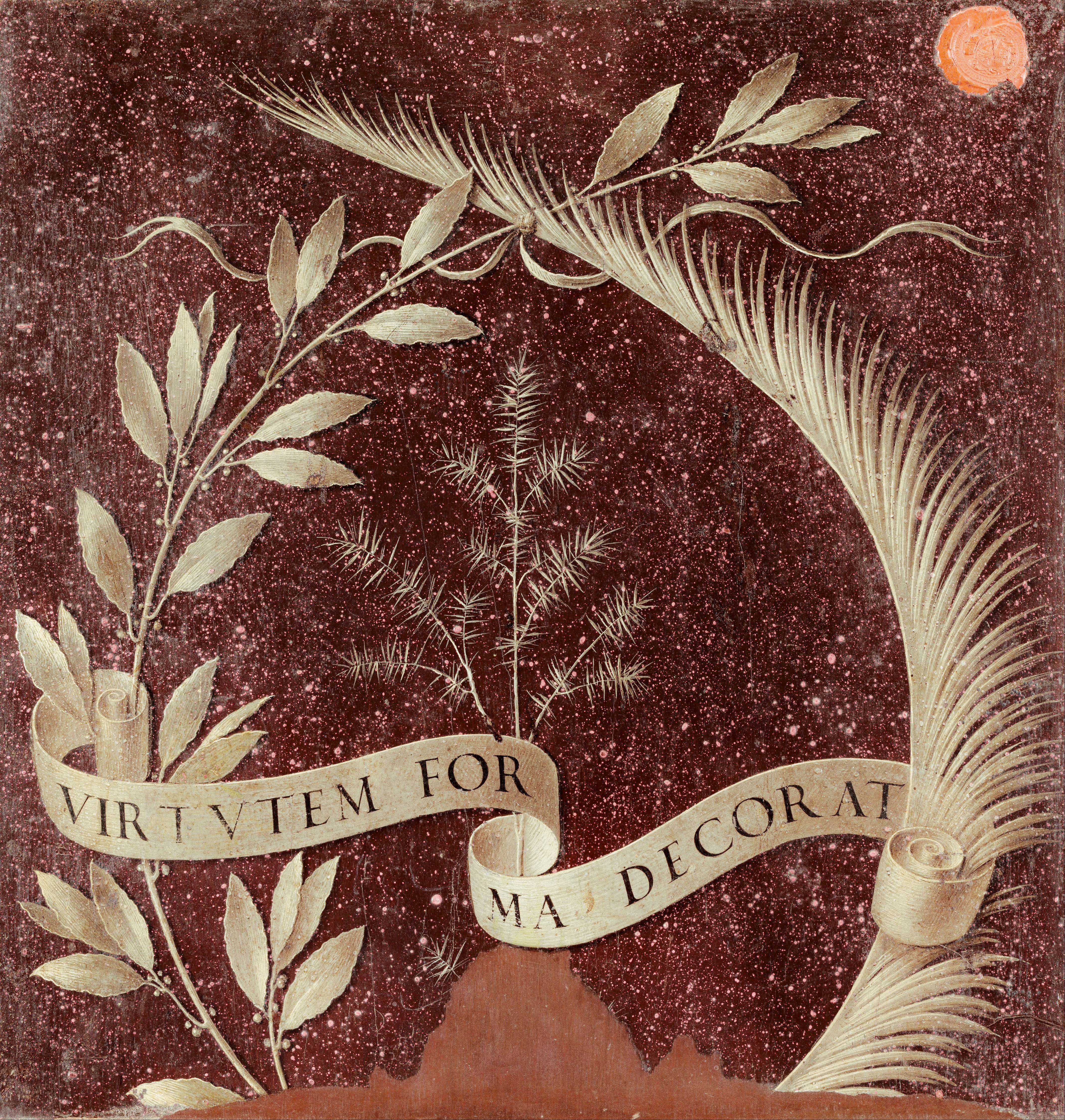 The Latin inscription, ‘virtutem forma decorat’ which means ‘beauty adorns virtue’ (perhaps a tad tongue-in cheek) on the reverse of the painting is off-centre which is further indication of a compromised original ‘format.’ Although I cannot speak for Leonardo (other than in my novels) he seems to be a symmetrical thinker. His inscription would most probably be centered to balance the overall shape of the panel.