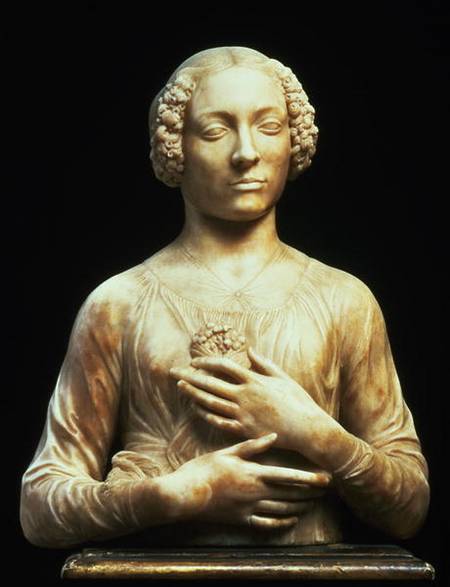 Leonardo’s drawing of hands may have been a study for the Ginevra commission. They are attributed as a precursor to Mona Lisa’s serenely-composed hands. A marble bust, believed to be Ginevra, sculpted by Leonardos’s first master, Andrea Verrocchio, posed her holding a bouquet of flowers, and several savvy poets dedicated sonnets to her during her ‘most popular girl of the month’ status. Many referenced their ‘it girl’ to a flower.