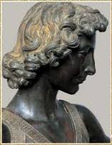 But the earliest image we have of him, is age 14 in this bronze sculpture of ‘David’. Leonardo posed for his teacher, Andrea Verrocchio, when he was the master’s fourteen-year-old apprentice