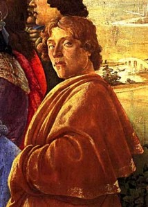 We know Sandro’s portrait remains alive as testament to his chance for creative immortality. And we know Botticelli’s Adoration of 1475 was left to dry in the musty air of an artist’s studio, wet and vulnerable in a corner, while other work continued around it. It is clear that no serious accident befell it when it passed from hand-to-hand… or did it?