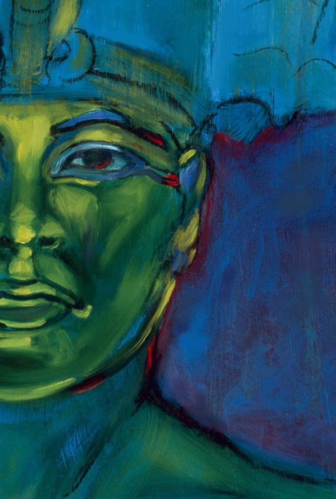 The green painting shown is the restored Egyptian god, Osiris.