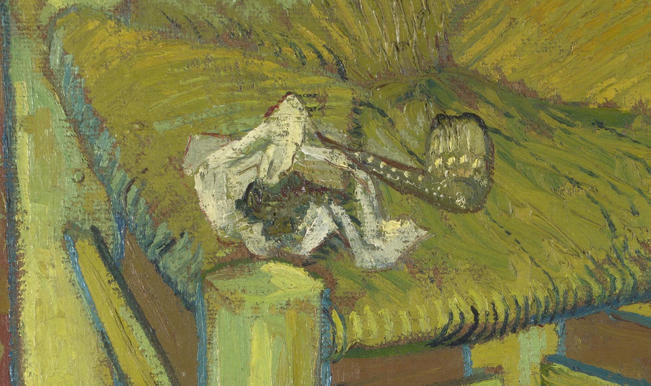 Twin yellow chairs and precariously hanging paintings in Vincent’s bedroom – 1888